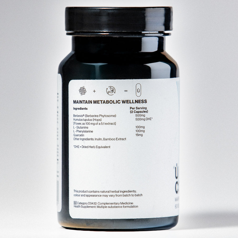 Ů WEIGHT CONTROL (Ů GLP) is your daily metabolic wellness ally. Formulated to support healthy digestion, balanced blood sugar, and sustained energy. Powered by Berbevis (Berberine), Hops Extract, L-Glutamine, and Quercetin, this targeted blend helps optimize gut function, curb cravings, and maintain steady metabolism and focus throughout the day.